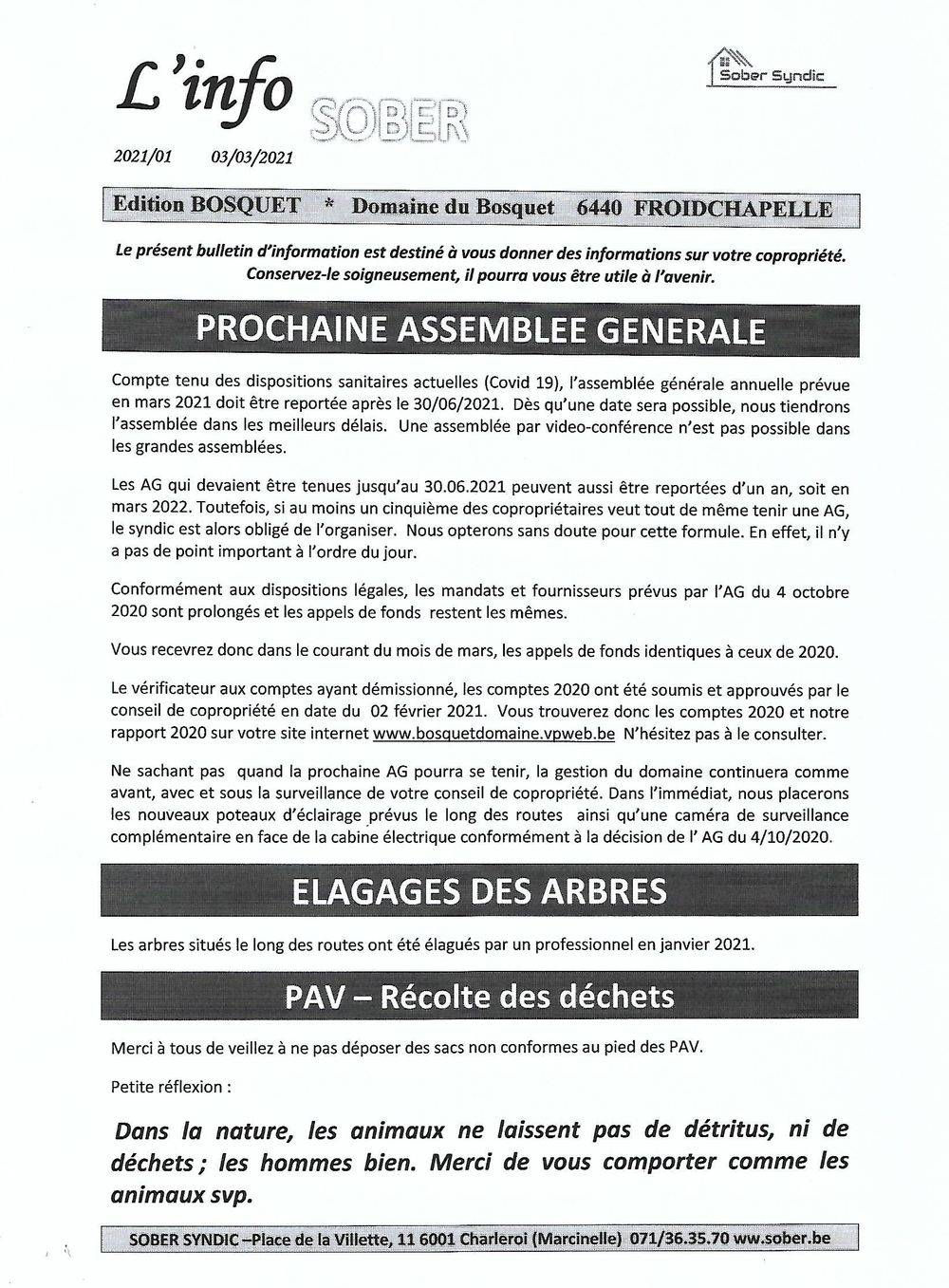 Assemblée générale LE BOSQUET prévue 20/03/2021